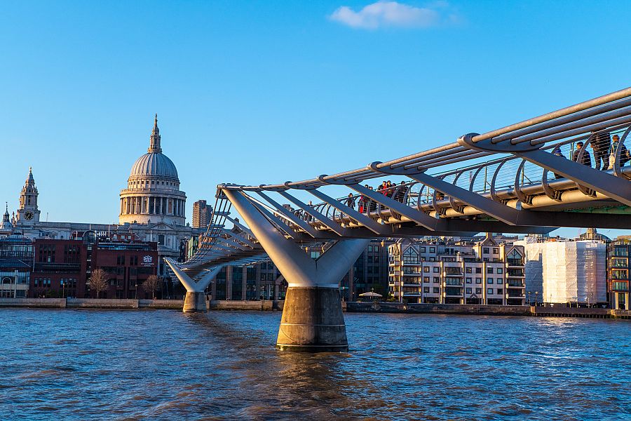 Přejdeme Millennium Bridge , elegantní moderní lávku pro pěší, která nás zavede přímo ke katedrále sv. Pavla. Tato mistrovská stavba s ikonickou kupolí , dílo architekta sira Christophera Wrena, je druhým největším kostelem v Británii. Zájemci se mohou vydat dovnitř, vystoupat na vyhlídkovou galerii nebo navštívit kryptu s hroby významných britských osobností .
