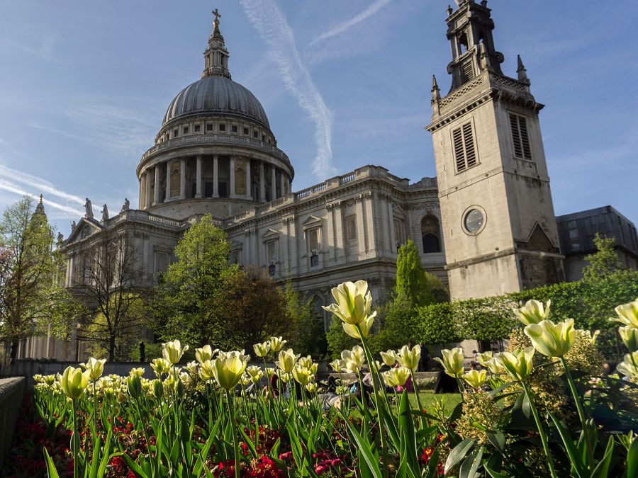 Na druhé straně řeky se před námi otevře pohled na majestátní katedrálu svatého Pavla, jedno z nejvýznamnějších děl architekta sira Christophera Wrena.