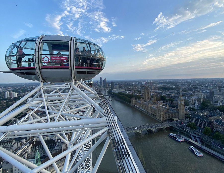 Odpoledne nás čeká  projížďka na vyhlídkovém kole  London Eye, které se tyčí na jižním břehu Temže. Během zhruba 30minutové jízdy si užijeme nádherné  panoramatické výhledy  na město, včetně Temže, Westminsteru a dál na moderní londýnskou čtvrť City. Vstupenky budou zajištěny pro předem přihlášené zájemce.