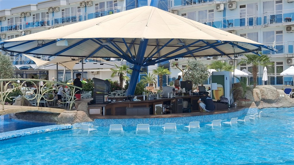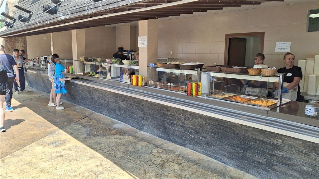 Pool Bar 10:00-22:00: točené pivo, místní alkoholické nápoje, víno, limonády voda z automatu, teplé nápoje.