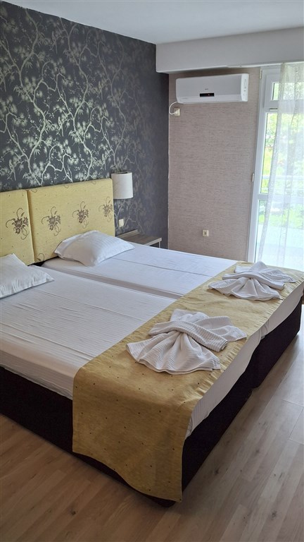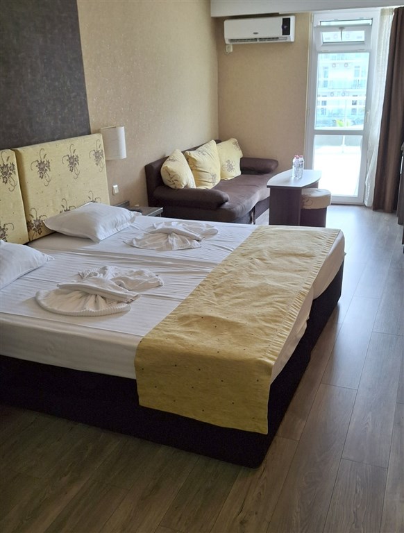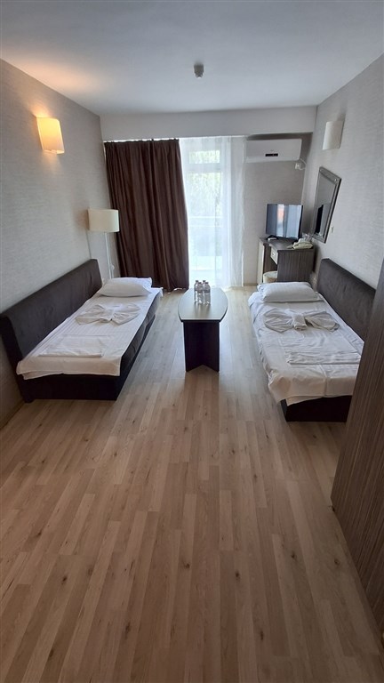 Pokoje: dvoulůžkové pokoje s vlastním soc. zařízením (WC, sprcha, fén) a možností 1 přistýlky pro dospělé nebo 1–2 přistýlek pro děti, mají minibar (za poplatek), satelitní televizi, telefon, balkon a klimatizaci. 1. přistýlka je gauč ve velikosti menšího lůžka, 2. přistýlka je skládací lůžko, které je kvůli prostoru třeba přes den složit.