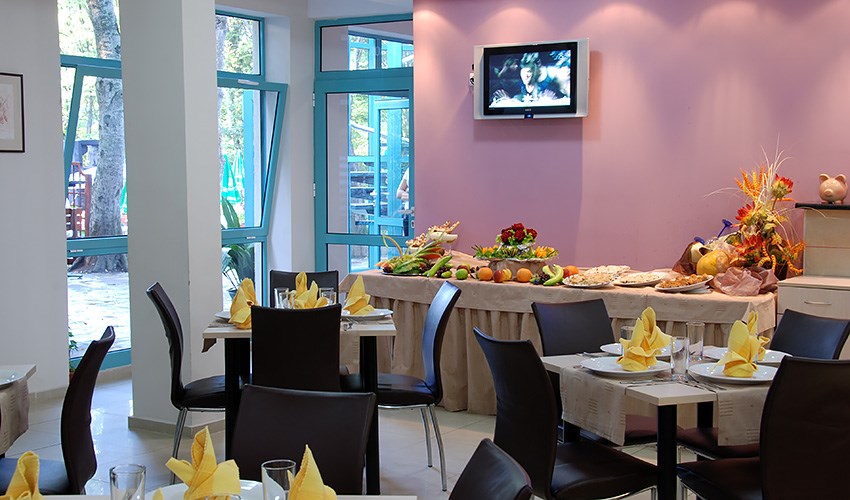 All inclusive – snídaně, obědy a večeře formou bufetu. Lehké občerstvení během dne – pizza, sendvič, hot dog, zmrzlina. Neomezená konzumace vybraných nealkoholických a místních alkoholických nápojů v místech a časech určených hotelem (10:00–22:00).