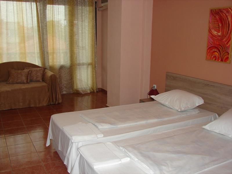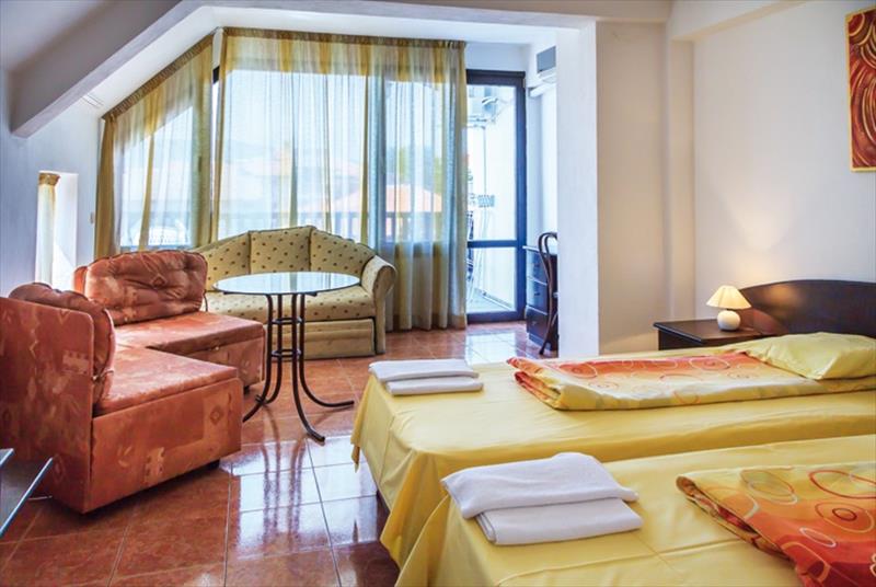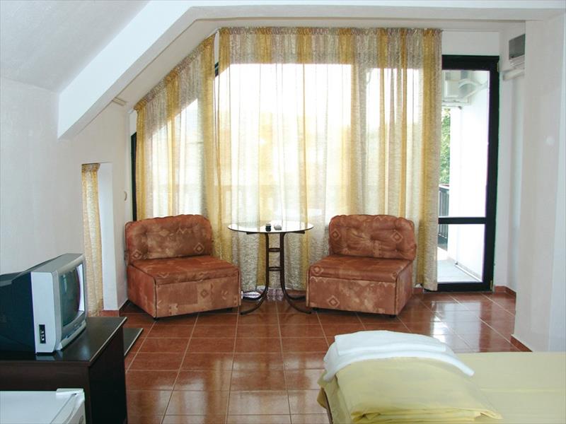 prostorné, stylově zařízené dvoulůžkové pokoje s možností až třech pohodlných přistýlek. Každý pokoj je vybaven vlastním soc. zařízením , ledničkou, rychlovarnou konvicí, TV, balkónem se zahradním nábytkem a klimatizací zdarma. Všechny pokeje jsou umístěny v patře.