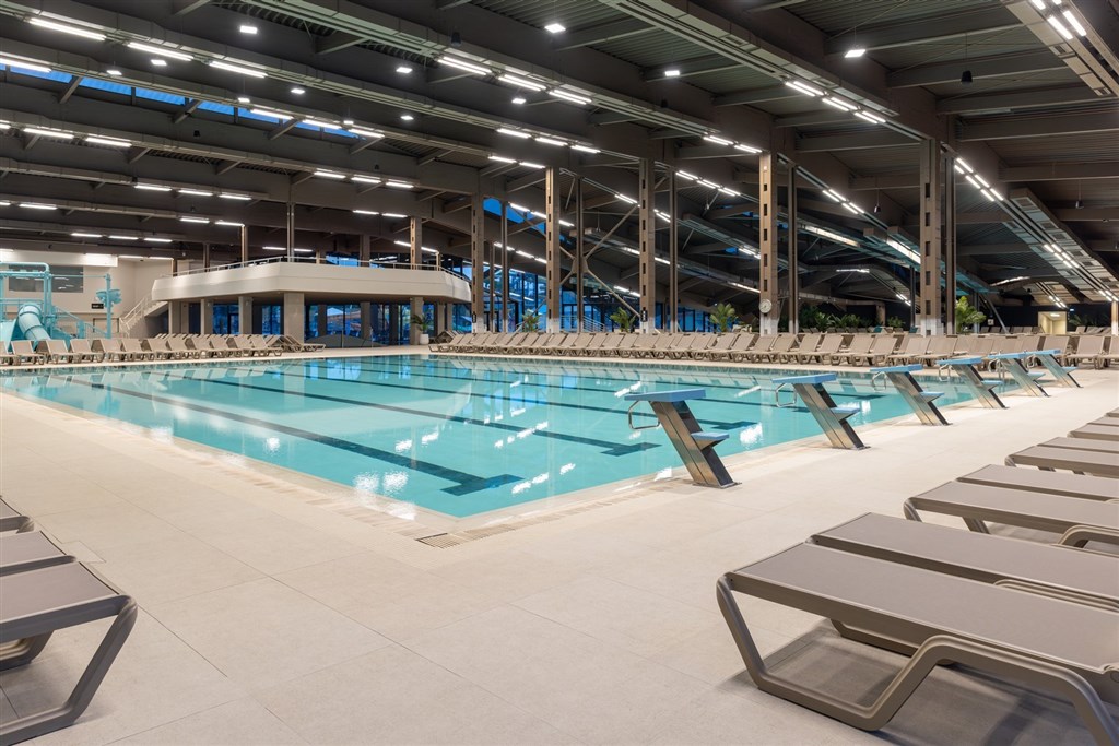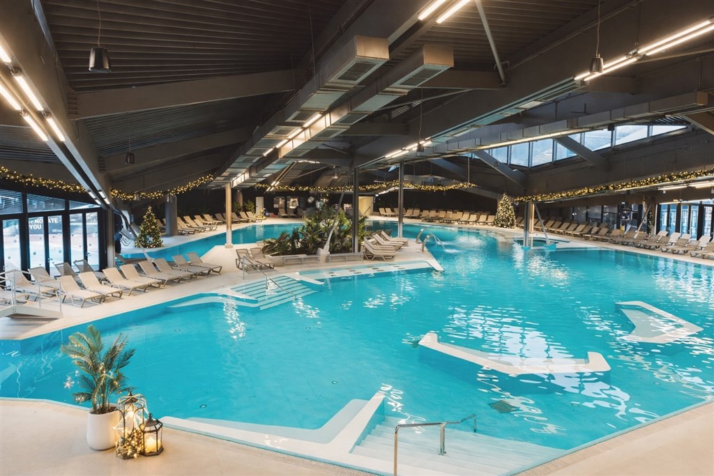 Velké wellness centrum tvoří dále 4 finské sauny, 3 parní sauny, vířivka, relaxační místnost s vodními postelemi a mnoho dalších zařízení.