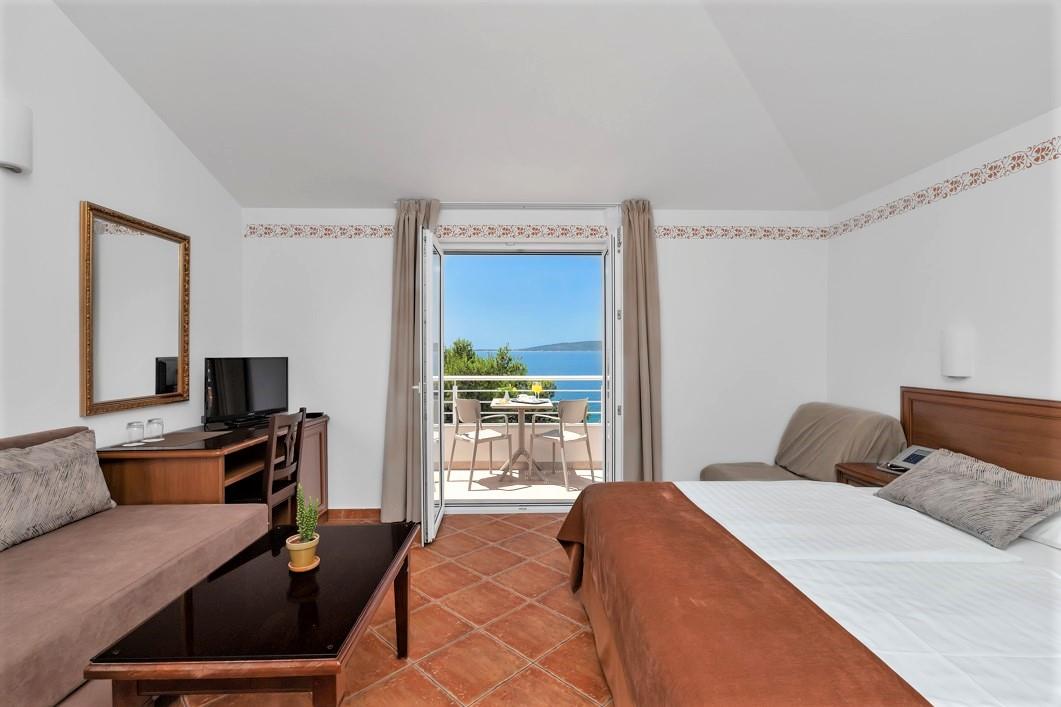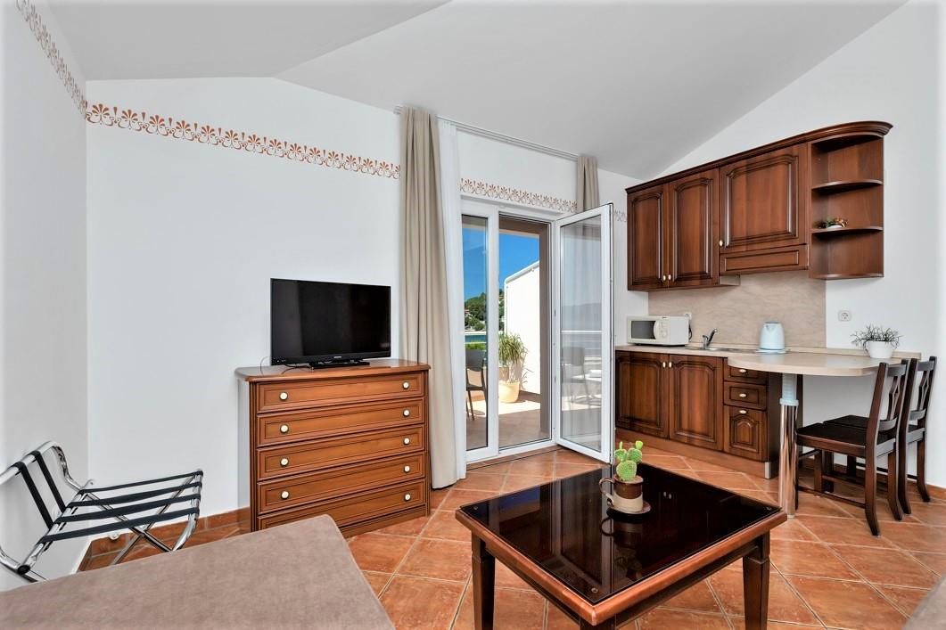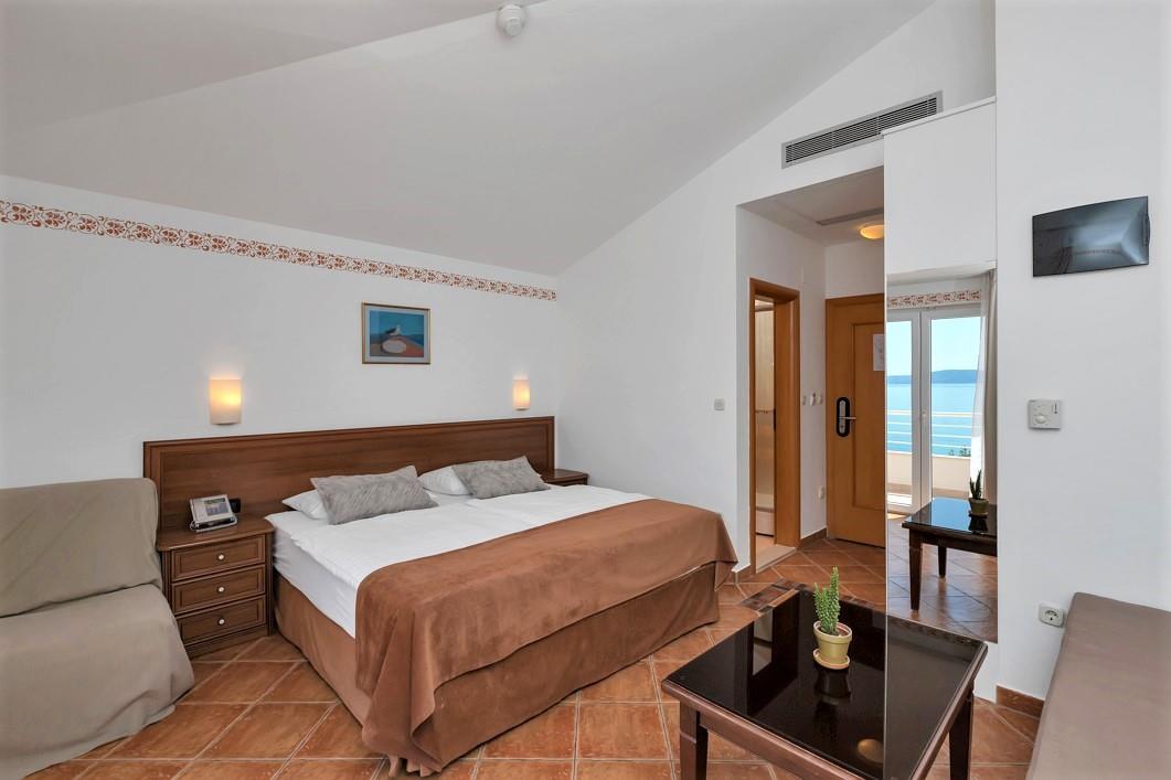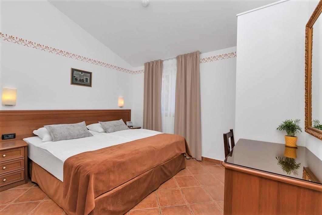 pokoje pro dvě osoby (některé s možností přistýlky) s balkónem, ledničkou, TV a vlastním soc. zařízením (SWC) a rodinné apartmány pro 4-5 osob sestávající z dvoulůžkové ložnice a obývací kuchyní s gaučem a možností přistýlky, balkónu, TV, kuchyňského koutu a vlastního soc. zařízení (SWC)