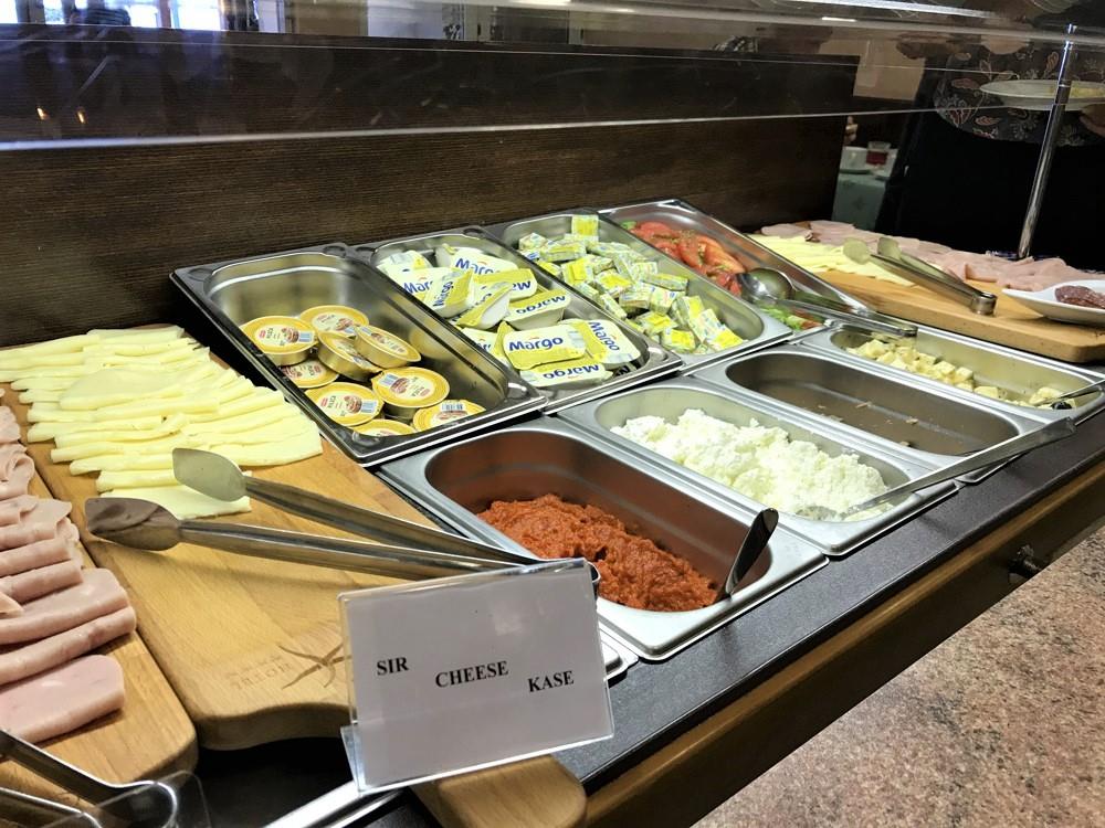 polopenze, snídaně formou bohatého bufetu, večeře výběrem hlavního jídla ze 3 menu plus polévka, saláty a deserty formou bufetu