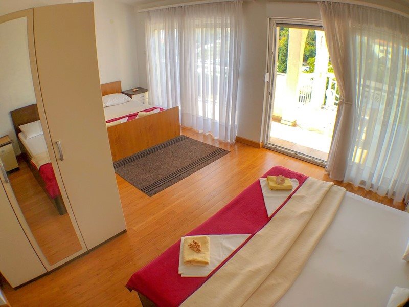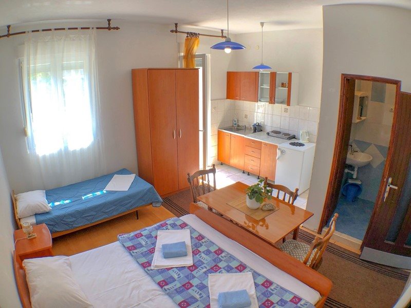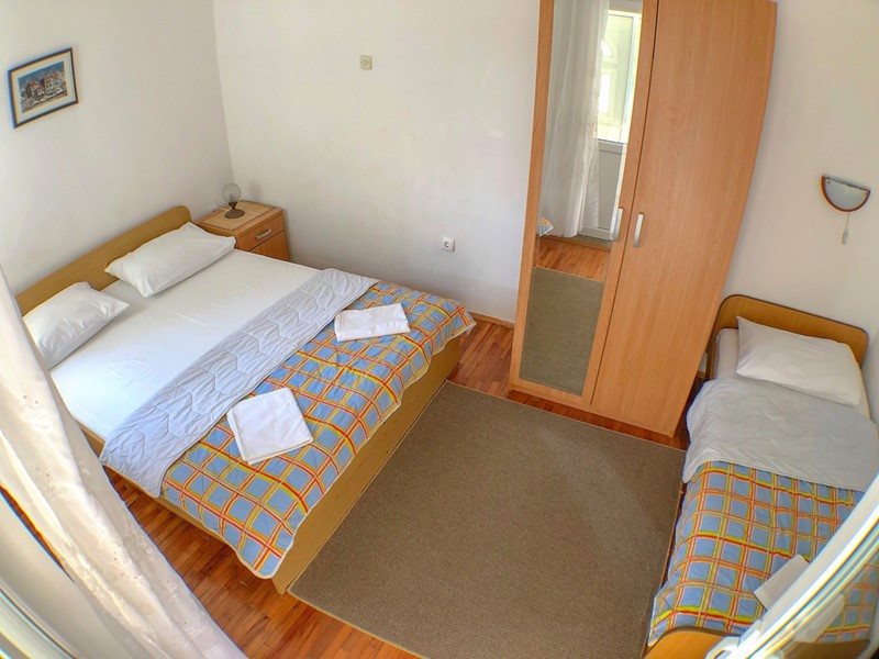 Sara vila: Vila Sara se skládá ze dvou budov – hlavní budovy a dependance. Obě budovy se nacházejí 200 m od centra a 150 m od moře, od sebe jsou vzdálené pouhých 60 m. Ve vile nabízíme studia pro 2-3 osoby, jedno studio pro 4-6 osob (5., 6. přistýlka formou gaučů), dále jeden apartmán pro 5 osob. V depandanci je k dispozici pokoj pro dvě osoby (bez balkonu, pouze základní vybavení bez možnosti kuchyňky a lednice), studio pro 2-3 osoby. Studia a apartmány jsou kompletně vybavené. Mají kuchyňský kout, sociální zařízení, balkon (kromě studia č. 11), SAT/TV, klimatizaci, WIFI. Parkování je možné u vily. Sportovní vyžití ve vzdálenosti 500 m, lékař včetně lékárny 100 m, pošta 200 m. Domácí zvířata jsou zakázána.