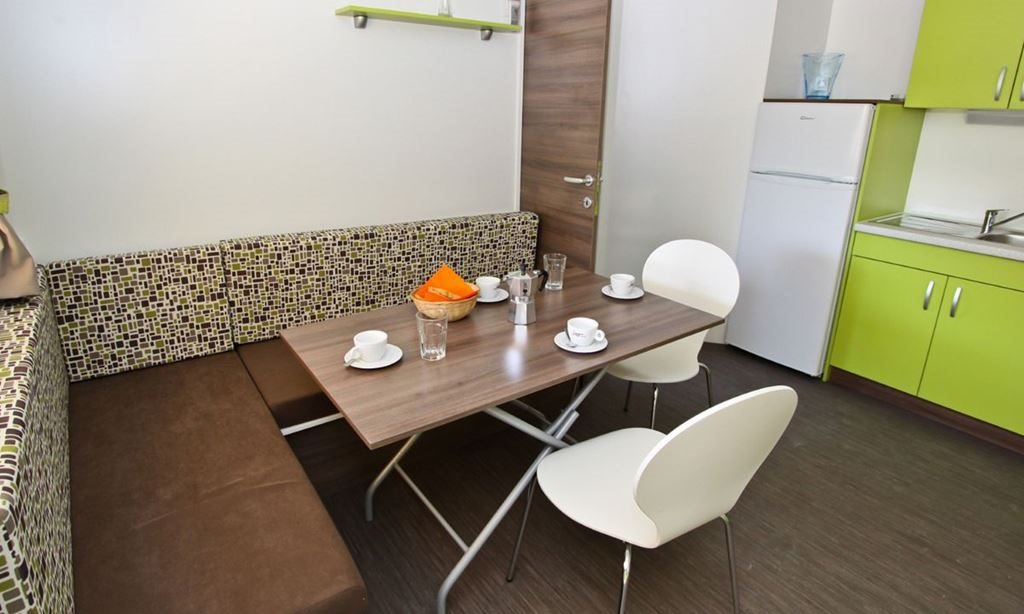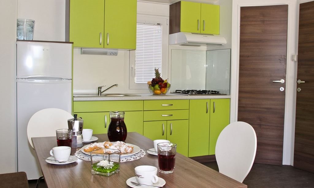 Mobilní chaty Maravea: 32 m2, mají 2 ložnice (jedna s manželskou postelí), obývací pokoj/kuchyni s rozkládací pohovkou, plně vybavený kuchyňský kout s nádobím, 2 koupelny se sprchovým koutem a toaletou, terasu (12-16 m2) se stolem, 4 židlemi a 2 lehátky. Jsou vybaveny SAT-TV, klimatizací, mikrovlnnou troubou, trezorem, fénem, rychlovarnou konvicí, Wi-Fi (zdarma). K mobilní chatě náleží parkovací místo pro 1 auto.