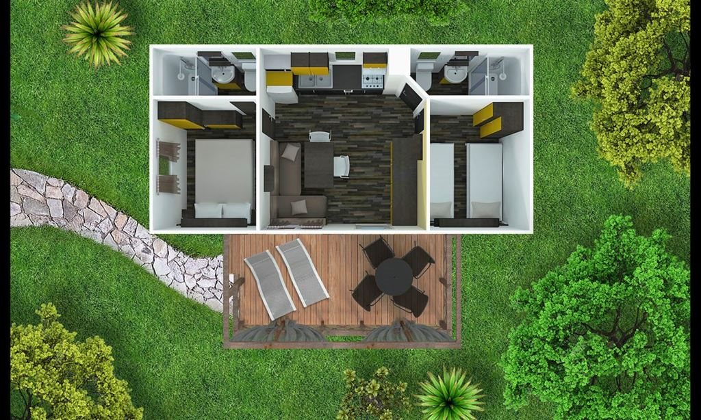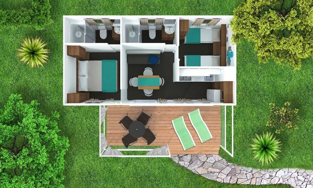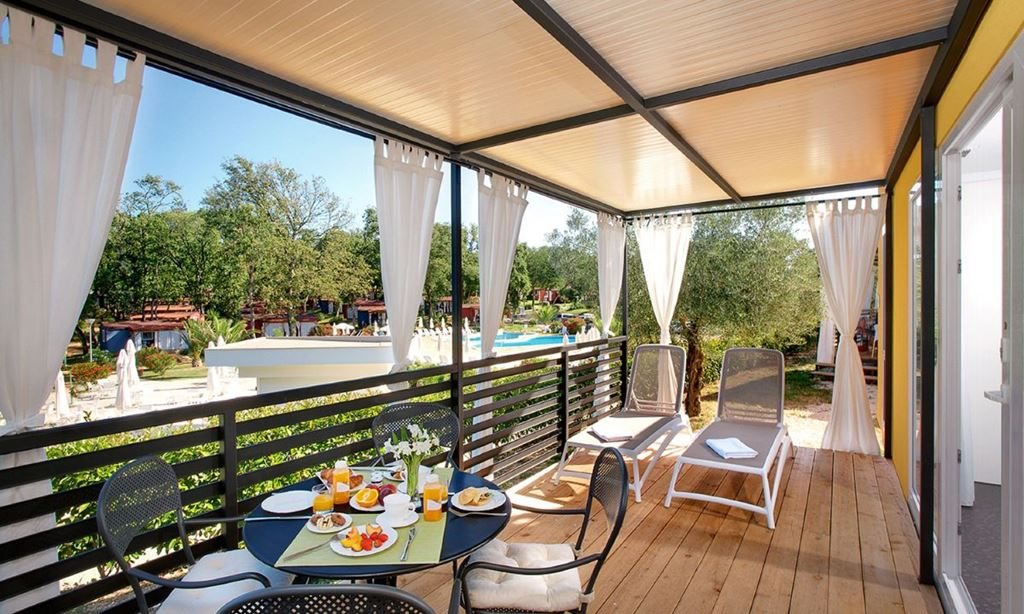 Mobilní chaty Mirami: 32 m2, mají 2 ložnice (jedna s manželskou postelí), obývací pokoj/kuchyni s rozkládací pohovkou, plně vybavený kuchyňský kout s nádobím, 2 koupelny se sprchovým koutem a toaletou, terasu (15 m2) se stolem, 4 židlemi, 2 lehátky a stojanem na kola. Jsou vybaveny SAT-TV, klimatizací, mikrovlnnou troubou, trezorem, fénem, rychlovarnou konvicí, Wi-Fi (zdarma). K mobilní chatě náleží parkovací místo pro 1 auto.