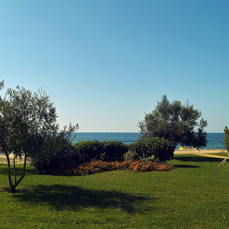 Nejbližší pláže jsou oblázkové, kamenité i dlážděné. Část pláže je povolena domácím mazlíčkům. Lehátka a slunečníky na pláži jsou za poplatek. K dispozici jsou i sprchy a převlékárny. Mezi nabízené vodní sporty patří půjčovna kajaků, šlapadel, vodních skútrů.