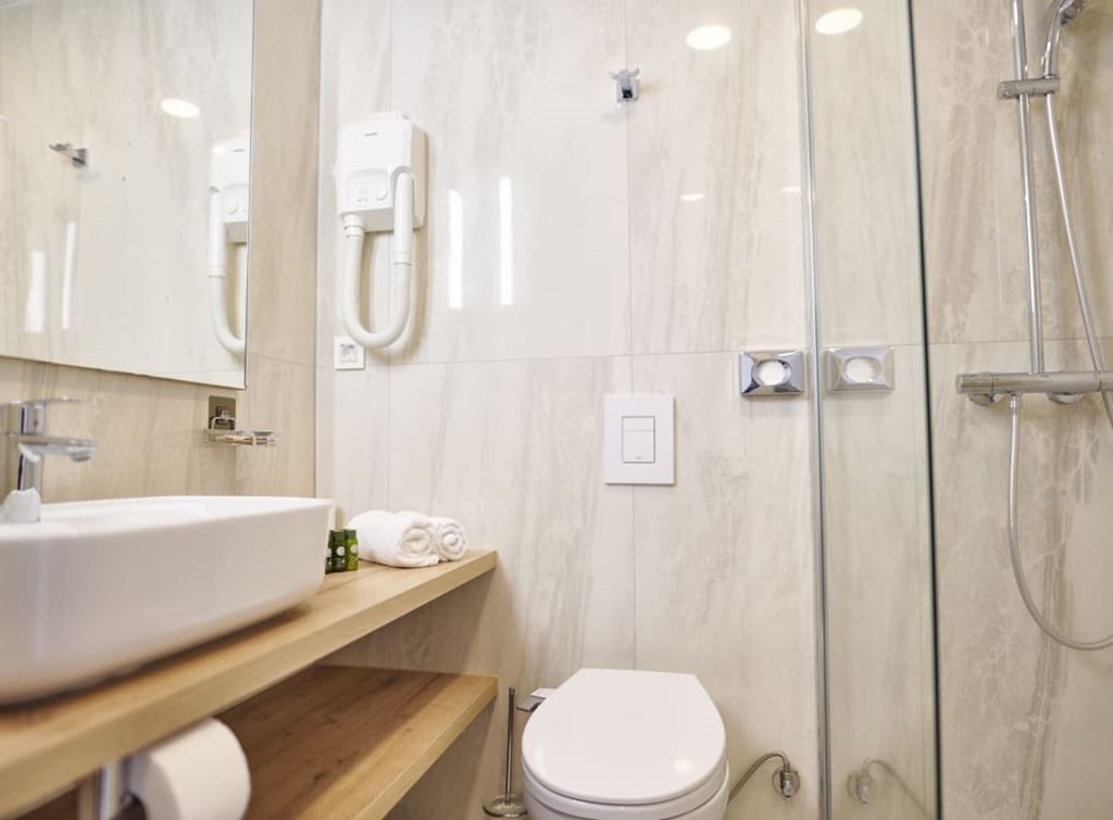 1/2 double/twin pokoj s balkonem (20 m2): dvoulůžkový pokoj se 2 oddělenými lůžky (80 x 200 cm, lze je spojit) a rozkládací pohovkou (90 x 200 cm). Pokoj je vhodný pro max. 3 osoby. Vybavení: klimatizace, telefon, LCD SAT/TV, Wi-Fi zdarma, koupelna se sprchovým koutem, fénem a toaletními potřebami, venkovní nábytek na balkoně.