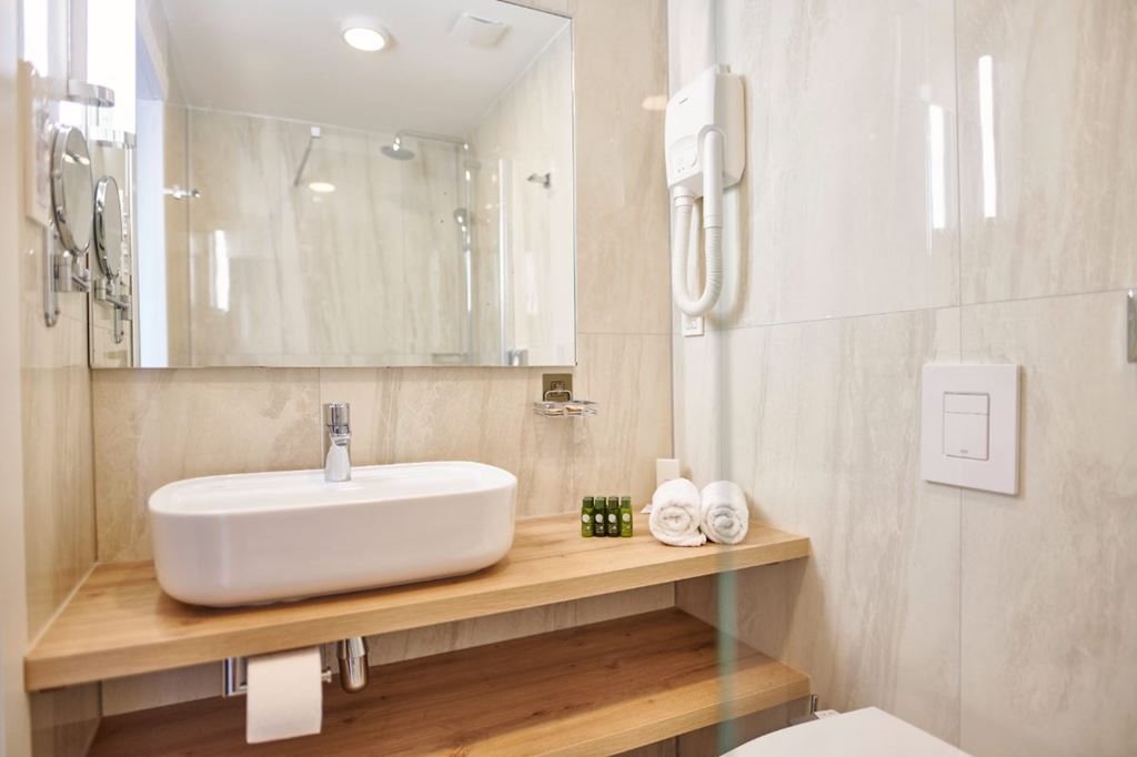 Hosté si mohou užívat slunce a moře na písečné pláži Slanica nedaleko hotelu stejně jako na skrytých kamenných blocích intimních pláží nebo u bazénu.
