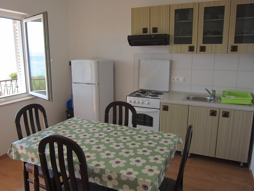 Apartmán je v 1. patře.: APT 2+1 má jednu dvoulůžkovou ložnici, kde jsou dvě spojená lůžka, obývací poko s gaučem pro 1 osobuj, vybavený kuchyňský kout, SAT/TV, Wi-Fi, koupelnu s WC, balkon s výhedem na moře.