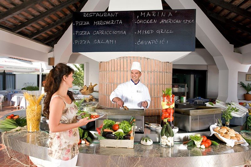 Polopenze se servíruje (snídaně a večeře) v restauraci Marina v blízkosti Lanterna Resortu.
