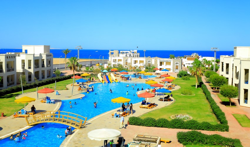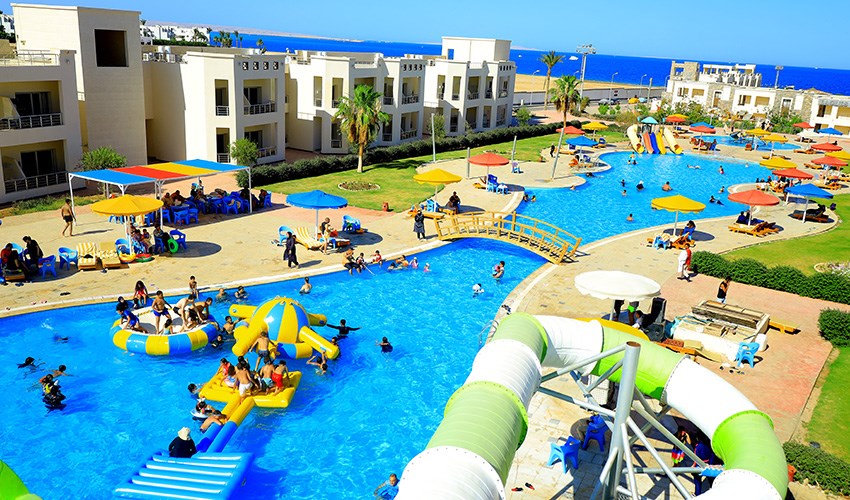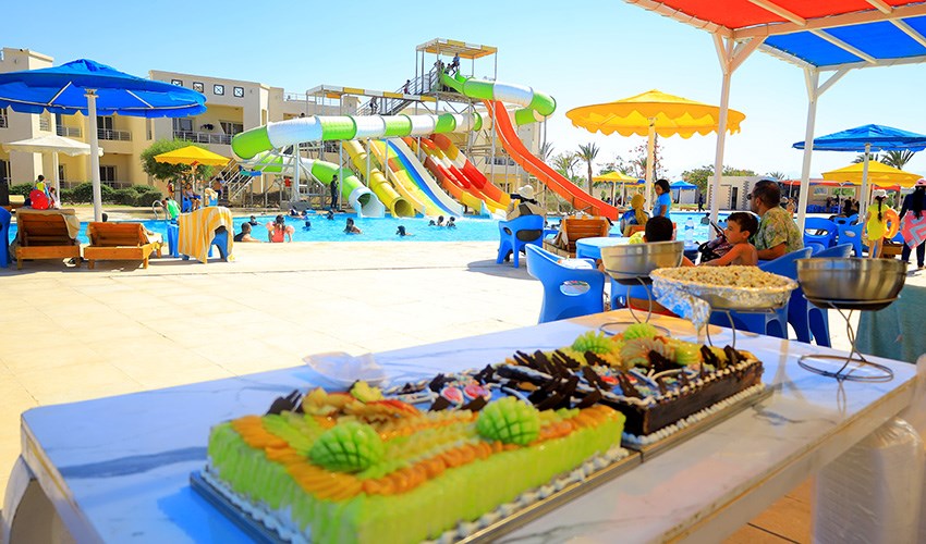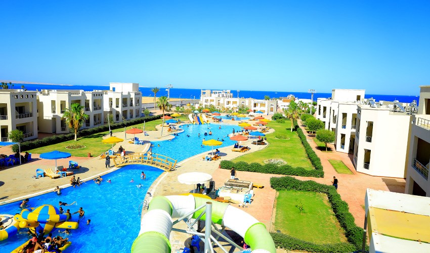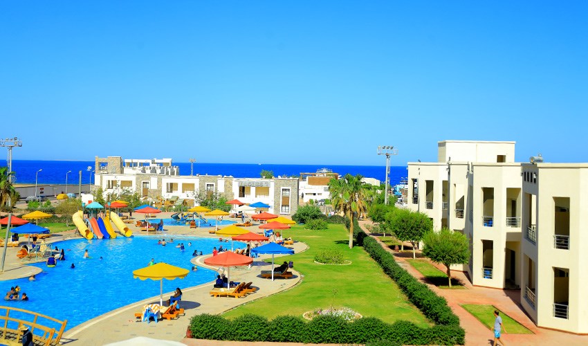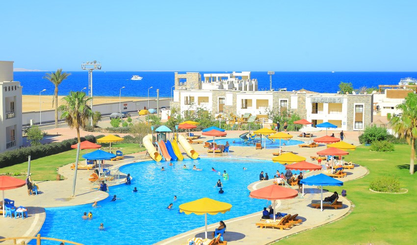Hotel New Eagles Aqua Park Resort v Hurghadě nabízí perfektní kombinaci odpočinku, zábavy a komfortu u písečné pláže v oblasti Magawish, na Safaga Road. Resort je obklopen pečlivě udržovanými zahradami a má velké venkovní bazény, z nichž jeden je vybaven vodním parkem se pěti skluzavkami – ideální zejména pro rodiny s dětmi. Na soukromé pláži jsou připraveny lehátka a slunečníky zdarma. Stravování probíhá formou bohatého bufetu v hlavní restauraci "Eagles Restaurant", kde nechybí výběr z mezinárodních i místních specialit, čerstvého ovoce, dezertů i vegetariánských možností. Pro aktivnější hosty je resort vybaven fitness centrem, tenisovým kurtem, stolním tenisem či vodními sporty, zatímco ti, kdo hledají relax, ocení Spa centrum s masážemi, saunou nebo párou. Děti mají svůj vlastní dětský bazén, mini klub i hřiště, takže rodiče mohou nerušeně relaxovat. Díky své poloze asi 17 km od centra Hurghady a s výbornou dostupností pláže představuje New Eagles Aqua Park Resort místo ideální pro ty, kteří chtějí spojit pohodlí, zábavu a krásné prostředí v jednom.