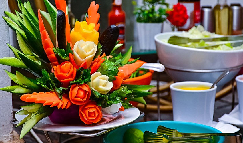 All inclusive – snídaně, obědy a večeře formou bufetu, občerstvení během dne. Neomezené množství vybraných nealkoholických a alkoholických nápojů místní výroby v časech a místech určených hotelem (10:00–23:00).