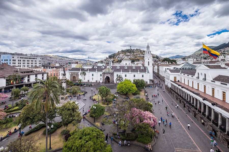 Projdeme se koloniálním centrem, kde uvidíme historická náměstí. Hlavním je Plaza de la Independencia (Plaza Grande), kde se nachází také prezidentský a arcibiskupský palác a katedrála . Uvidíme také kostel La Compañía s honosným interiérem a baziliku Basilica del Voto Nacional .