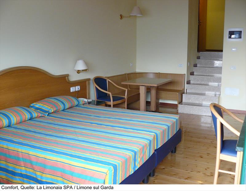 2-4 lůžkové pokoje mají koupelnu s WC, TV-Sat, fén, klimatizaci v červenci a srpnu zdarma, trezorek, balkon nebo terasu. 3. a 4. lůžko v pokoji může být i palanda. Pokoje jsou cca 16 m2 veliké. 2 lůžkové pokoje komfort jsou cca 18 m2 veliké.