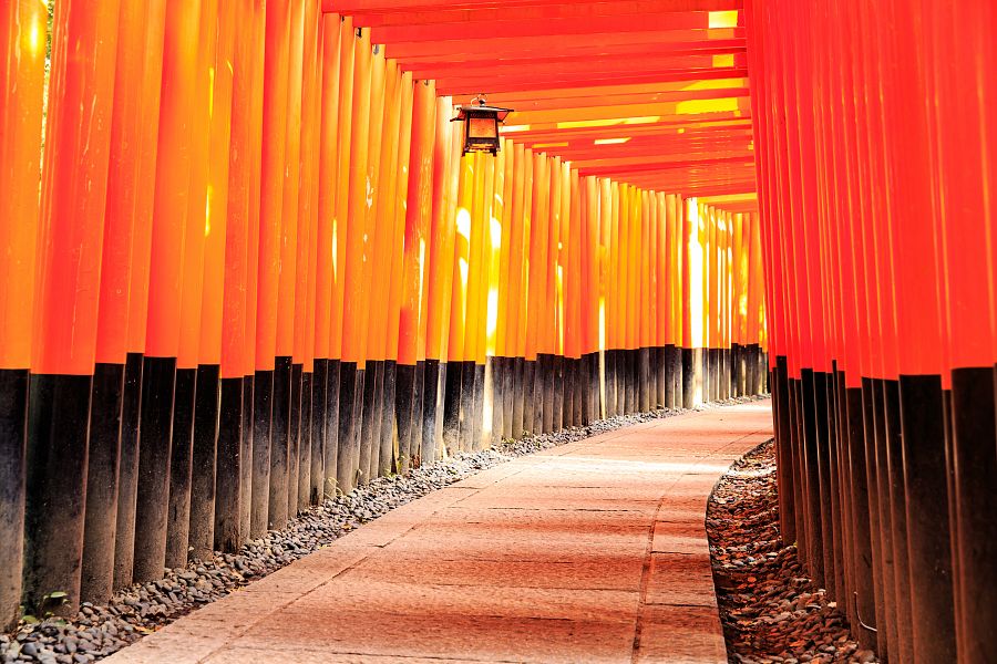 Jako první nás čeká návštěva jedné z nejznámějších kjótských svatyní, Fušimi Inari, která proslula svými dlouhými klikatými chodbami složenými z tradičních oranžových bran torii .