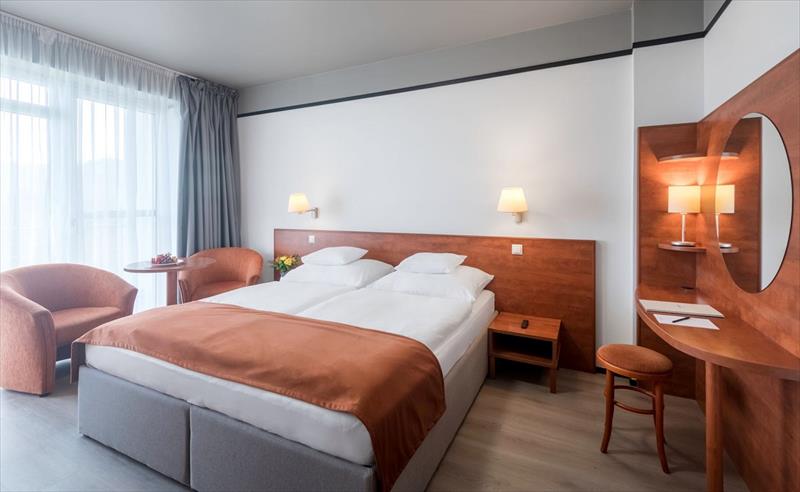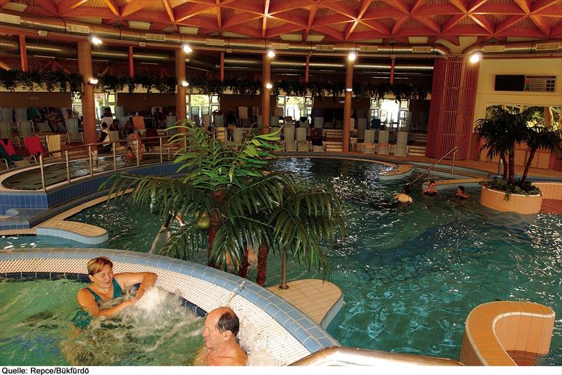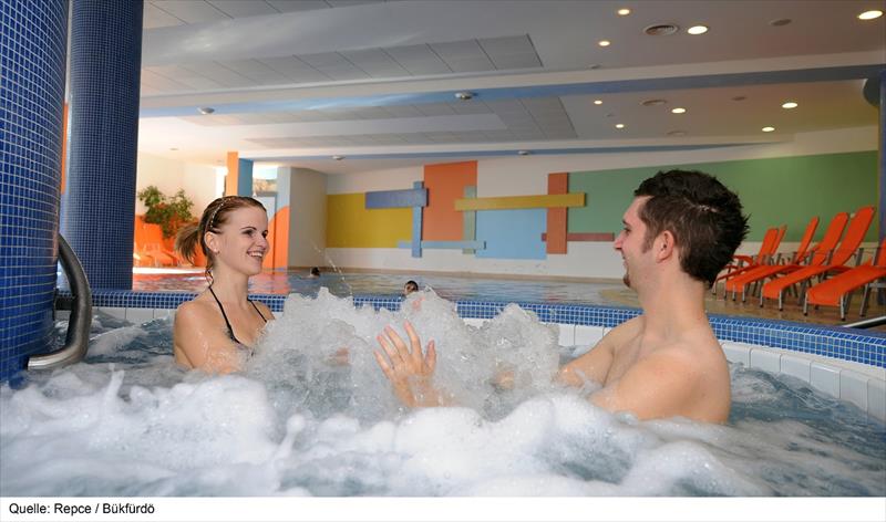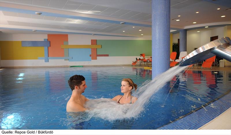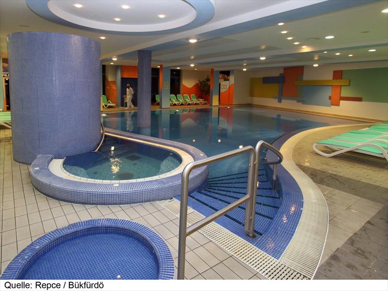 zazemi: společné wellness se saunami, párami a infrakabinou, posilovna. Hosté mají v ceně vstup do léčebných lázní a koupaliště Bükfürdö v ceně (modrá zóna, mimo saun) – 4 léčebné bazény 30-39 stupňů, sportovní bazén 29 stupňů, venkovní bazény pro děti se skluzavkami (venkovní bazény v provozu dle počasí). Pobyt na 3 noci=3 vstupy atd.