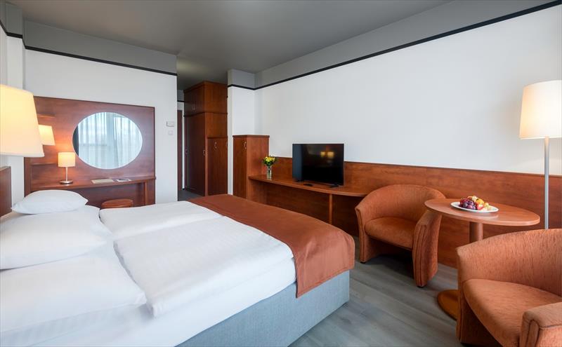 vybaveni: každá část hotelu má svou recepci, k dispozici je wi-fi zdarma, výtah, restaurace, kavárna, bar, parkoviště – 1 parkovací místo na pokoj zdarma, zahrada s lehátky a slunečníky pro hosty, herna pro děti.