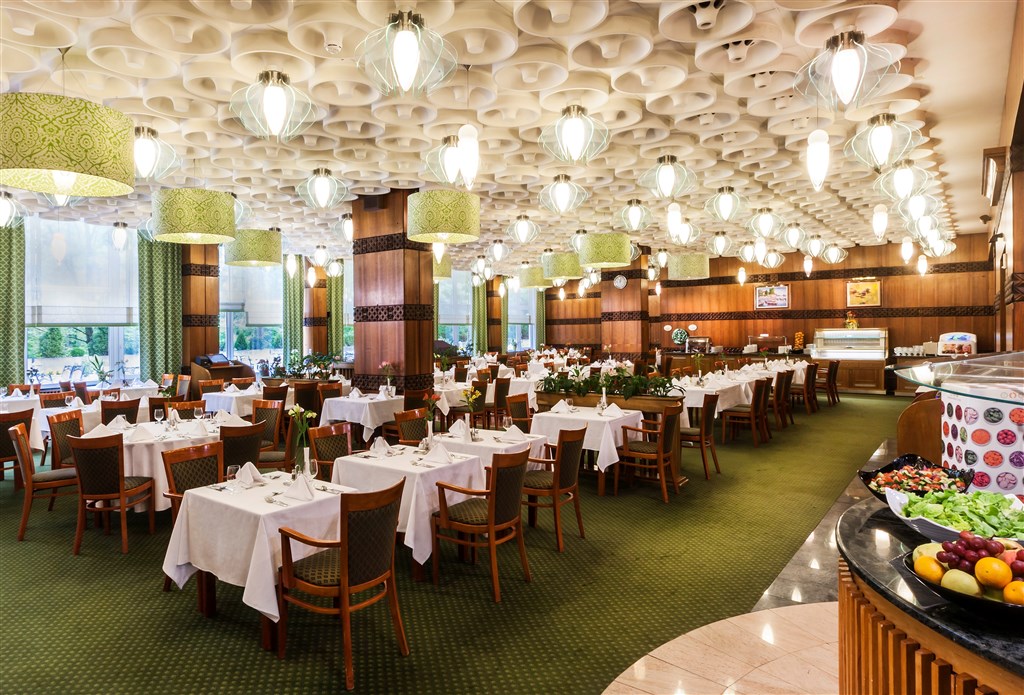 Velmi chutná polopenze (snídaně a večeře) formou bufetu v hotelové restauraci s venkovní terasou (maďarská a mezinárodní kuchyně).
