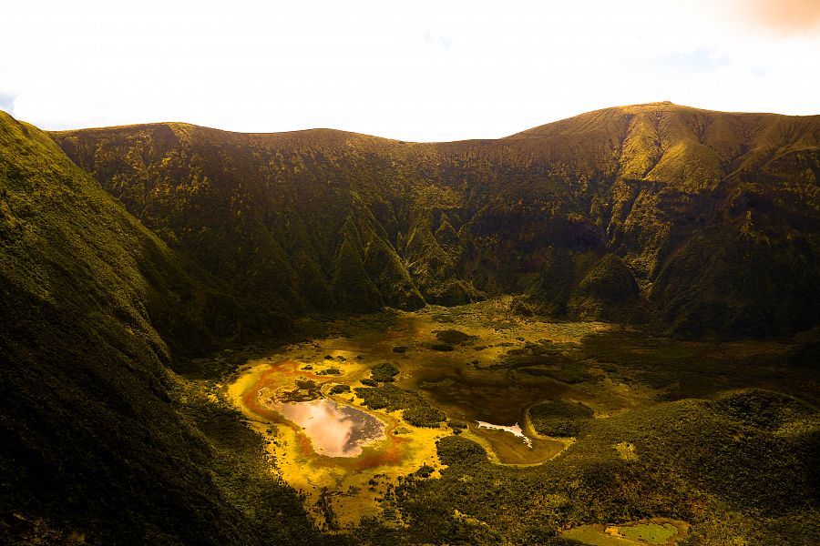7. den: Výlet s výhledy na překrásné krátery, připomínající golfové jamky a okolní ostrovy zakončený koupáním v lávových jezírkách Faja do Ouvidor. Dnes se budeme toulat po nejvyšším pohoří ostrova v cca 1000 metrech n. m.. Cesta nabízí výhledy na překrásné krátery , připomínající golfové jamky a okolní ostrovy (Pico, Faial, Graciosa,Terceira). Krátkou procházkou si vyšlápneme i nejvyšší horu ostrova Sao Jorge . Odměnou nám bude koupání v lávových jezírkách Faja do Ouvidor,  která jsou považována za nejhezčí koupačku Azor.