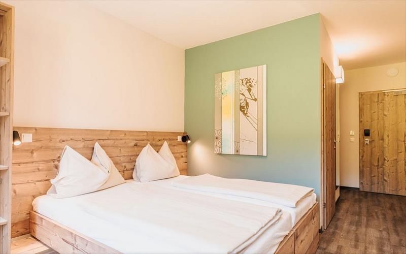pokoje mají koupelnu s WC, kabelovou TV, fén a balkon. 2-3 lůžkové pokoje jsou cca 21-24 m2 veliké, rodinné pak cca 40 m2 a tvoří je 2 místnosti propojené dveřmi. Musí v nich být ubytované minimálně 2 dospělé osoby a 1 dítě, maximální obsazenost jsou 3 dospělé osoby a 1-2 děti.