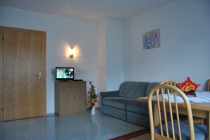 Apartmán pro 4-6 osob – cca 53 m2, předsíň, obývací pokoj s kuchyňským a jídelním koutem, rozkládací gauč pro 2 osoby, 2x ložnice s dvoulůžkem, koupelna, WC.
