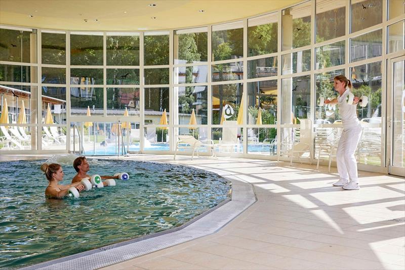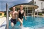 zazemi: hosté mají k dispozici vnitřní bazén 8 x 8 m, venkovní bazén 13 x 5 m, saunu, biosaunu a stolní tenis.