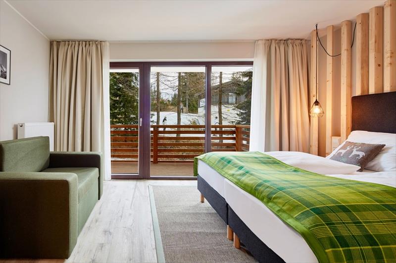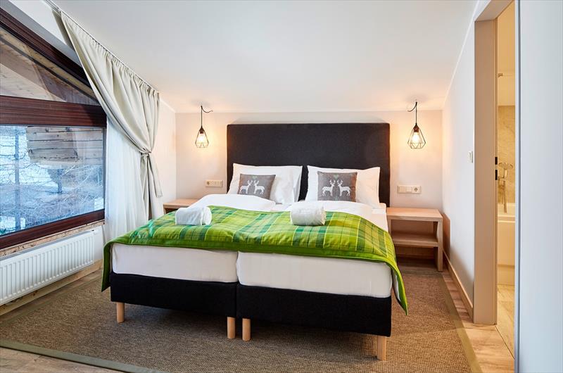 Apartmán pro 4-6 osob- cca 72 m2, 2x dvoulůžková ložnice, obývací pokoj s gaučem pro 2 osoby, 2x koupelna s WC.