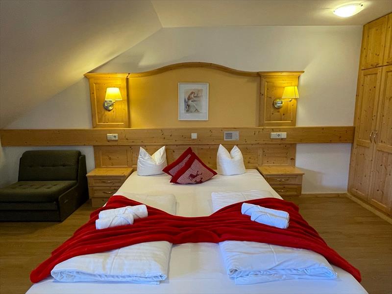 2-4 lůžkové pokoje mají koupelnu s WC, TV-Sat, fén, balkon. 3. a 4. lůžko v 2-4 lůžkovém pokoji je rozkládací gauč.