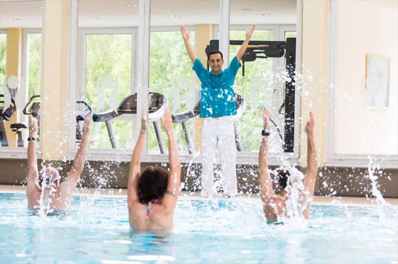 zazemi: hosté mají k dispozici vnitřní bazén 10 x 15 m se slanou léčivou vodou teplou 31 stupňů, saunu, biosaunu, odpočívárnu a stolní tenis.