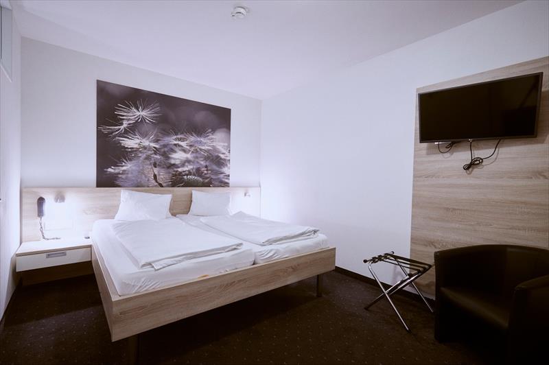 2-4 lůžkové pokoje jsou cca 23 m2 veliké, mají koupelnu s WC, TV-Sat, dvoulůžko a vyklapávací postele nebo palandy jako přistýlky, trezorek, fén a balkon.
