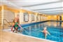 zazemi: hosté mají k dispozici vnitřní bazén 25 x 7 m, venkovní bazén 18 x 6 m, termální bazén a posilovnu. Na místě je možné doobjednat masáže či jiné procedury, hotel slouží i jako lázně. Sauny nebudou v létě z důvodu rekonstrukce pravděpodobně v provozu.