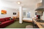pokoje mají vlastní sociální zařízení a kabelovou TV, některé balkon nebo terasu. Rodinné pokoje tvoří 2 místnosti a je v nich malá kuchyňka s ledničkou. Na přistýlkách je možné ubytovat děti do 15,9 let. V pokojích mohu být pro děti palandy. Úklid je prováděn 1x týdně.
