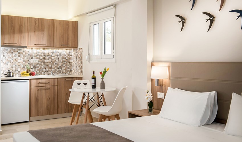 dvoulůžková studia s možností přistýlky s výhledem do zahrady