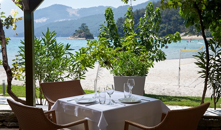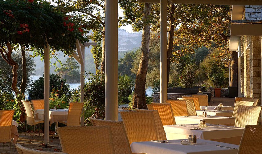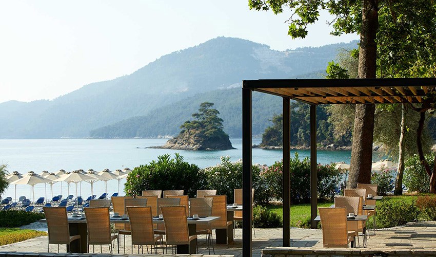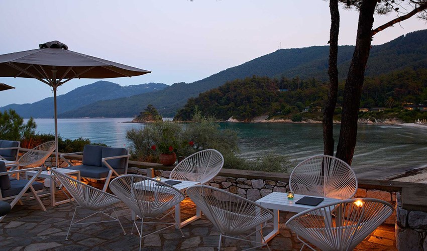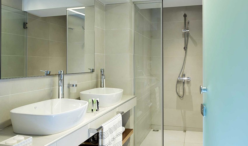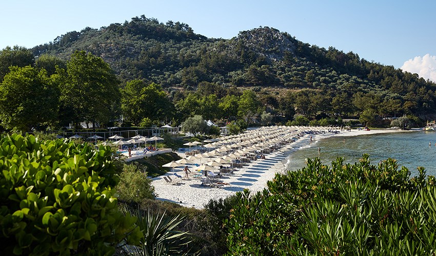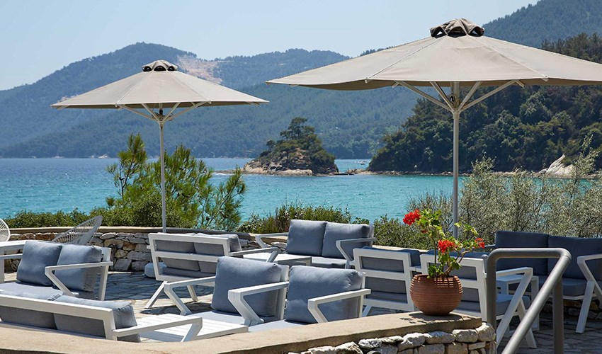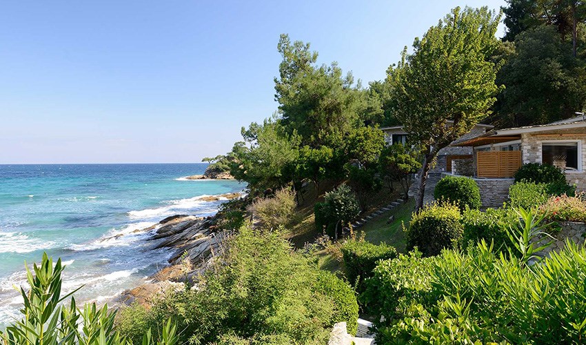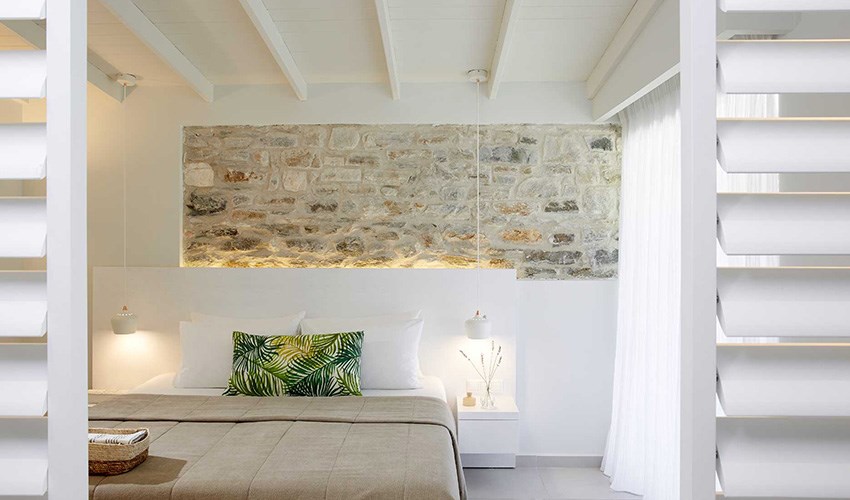 pokoje JUNIOR SUITE SUPERIOR: dvoulůžkové pokoje s možností až dvou přistýlek umístěny v bungalovech v areálu do 350 m nad pláží, terasa s částečným výhledem na moře.