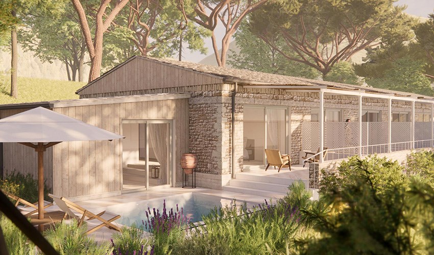 pokoje DELUXE: dvoulůžkové pokoje s možností jedné přistýlky se nachází v areálu do 100 m od pláže v blízkosti bazénu, terasa s výhledem na moře. pokoje DELUXE PLUS: dvoulůžkové pokoje s možností jedné přistýlky se nachází v areálu do 100 m od pláže v blízkosti bazénu, terasa s výhledem na moře, nově postavené v roce 2025.