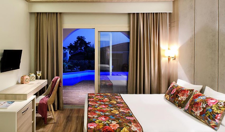dvoulůžkové pokoje Deluxe s možností až dvou přistýlek se sdíleným bazénem