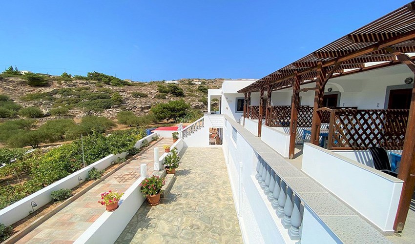 Nedaleko malebného zálivu Potali Bay, jen pár minut chůze od oblázkovo-písečné pláže, se nachází útulné ubytování White Castle ve vesničce Lefkos na ostrově Karpathos. Obklopené pečlivě udržovanou zahradou plnou květin a bylinek, nabízí klidnou atmosféru typickou pro tradiční řecké prostředí. Studia jsou umístěna v prvním patře budovy a disponují balkónem nebo terasou s výhledem do zahrady či na moře. Jsou vybavena kuchyňským koutem, koupelnou a klimatizací, což je ideální pro hosty, kteří preferují nezávislost. Menší kapacita objektu a přítomnost majitelů v přízemí vytváří přívětivou, rodinnou atmosféru. Poloha ubytování je velmi výhodná, pláž je vzdálena 400 metrů a centrum Lefkosu asi 1,2 kilometru. Nedaleko se nachází taverna i menší obchod se základními potravinami. White Castle je ideální volbou pro páry, menší rodiny i jednotlivce, kteří hledají klidnou a autentickou dovolenou v krásném prostředí ostrova Karpathos.