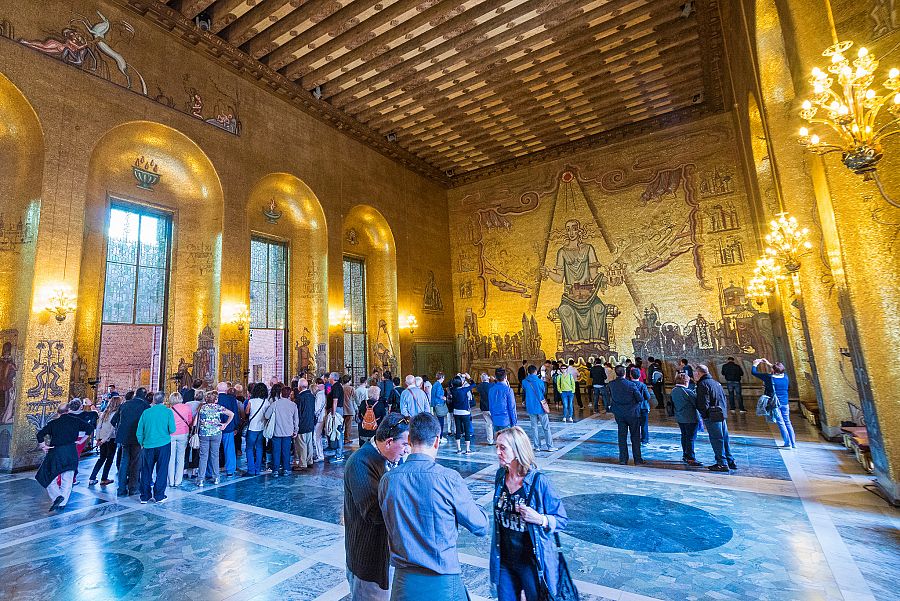 Dnešní program započneme u stockholmské radnice, jejíž věž z červených cihel představuje jeden z význačných stockholmských bodů viditelných z velké dálky. Zájemci budou mít možnost navštívit její skvostné interiéry , které zahrnují také jedinečný Zlatý sál . Radnice se každoročně 10. prosince stává místem udělování Nobelových cen a následného slavnostního banketu.