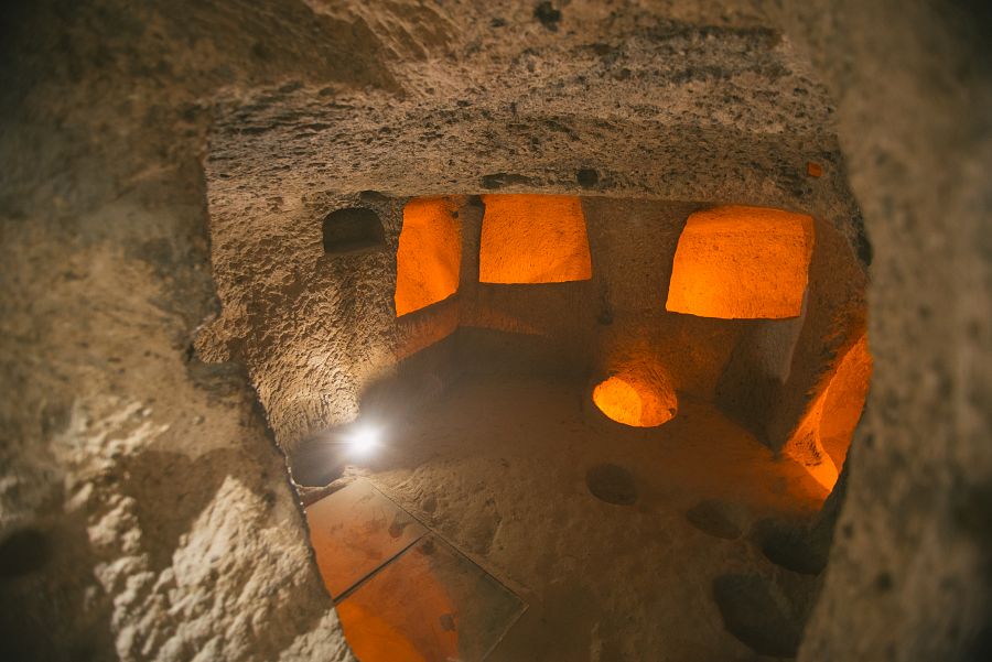 Oblast Kappadokie skrývá více než stovku podzemních měst, městeček a vesnic. Zdejší podzemní města byla vybudována již před 3 000 lety a poskytovala úkryt jak lidem, tak dobytku. Lidé zde nejen bydleli, ale tato podzemní obydlí využívali i jako skladiště, budovali v nich kostely a kláštery.