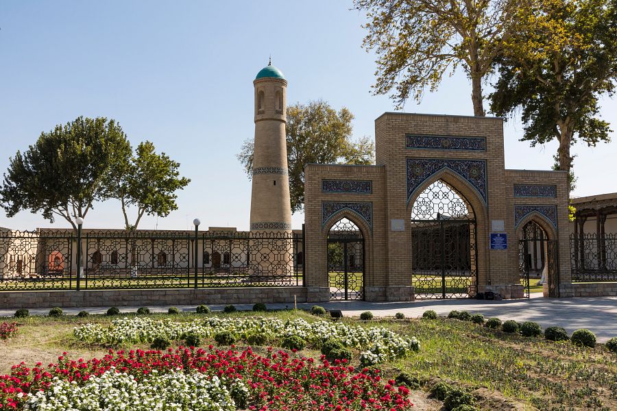 Pak navštívíme madrasu Muhammada Aminhana z 19. století s unikátním modrým minaretem , která je největší v celé centrální Asii. Samotný minaret se měl stát největším na světě, projekt ovšem nebyl nikdy dokončen.