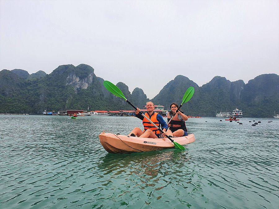 Odpoledne budeme mít příležitost prozkoumat skály i zblízka na kajacích . Ze smaragdové vody Tonkinského zálivu vyrůstají tyto vápencové věže a maličké ostrůvky porostlé lesem.