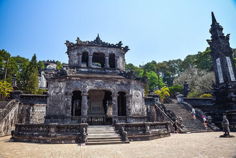 Po odpočinku pak přejedeme za město, abychom si prohlédli několik velkolepých královských hrobek . Hrobka Minh Manga je proslulá svou architekturou a krásným lesním prostředím. Oproti tomu hrobka Khai Dinh je monument na svahu, jehož exteriér pokrývá z většiny zčernalý beton a vytváří tak nečekanou gotickou atmosféru.