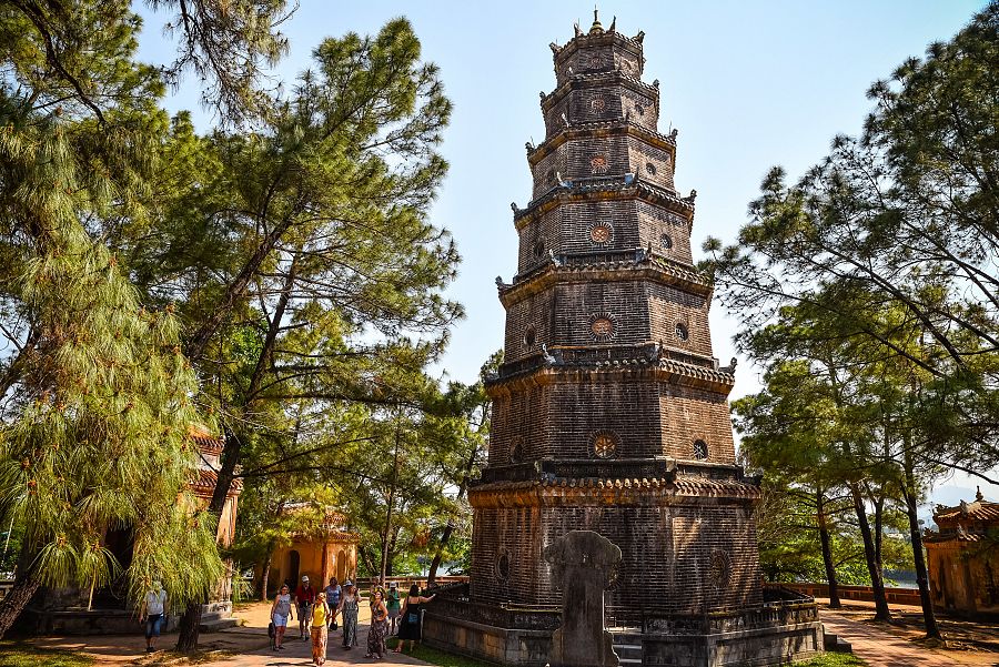 Nebude chybět ani plavba ke kouzelné a historií opředené pagodě Thien Mu . Její osmiboká 21 metrů vysoká věž Tháp Phuoc Duyen byla postavena za vlády císaře Thieu Tri v roce 1844. Každé z jejích sedmi podlaží je zasvěceno Manusi Buddhovi, Buddhovi, který se objevoval v lidské podobě.