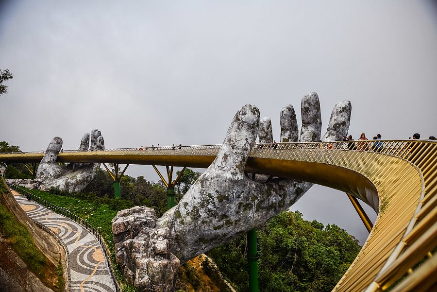 V případě dobrého počasí vyjedeme lanovkou (5,7 kilometru) do hor oblasti Ba Na Hills , kde je v bývalém francouzském rekreačním středisku nově vybudovaný Golden Bridg e. Lanovka má převýšení 1 400 metrů a vede přes hustou džungli a nádherné vodopády.